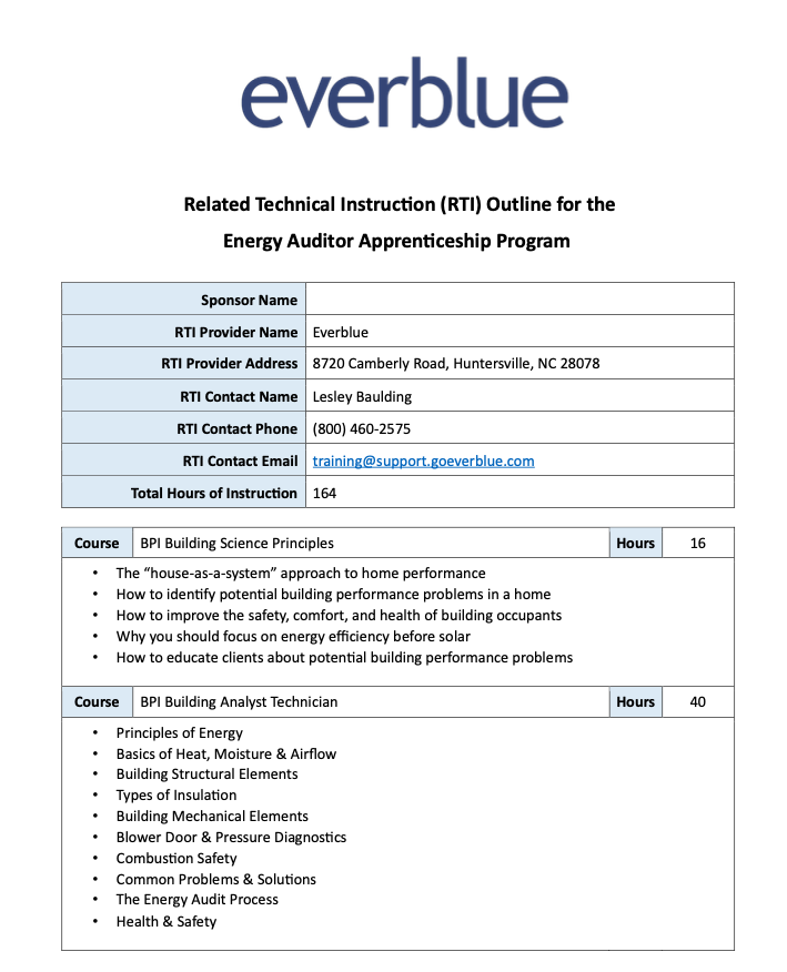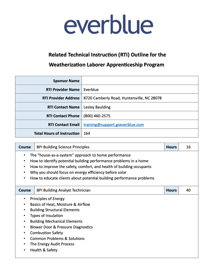 We have the complete set of training to run your Weatherization or Energy Auditor Apprenticeship program.